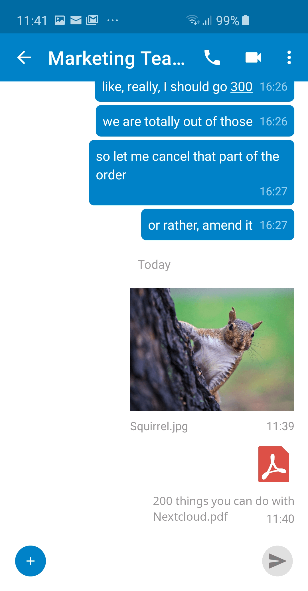 Nextcloud Talk hace que sea fácil llamar a clientes y colaboradores en escenarios uno a uno o grupales.